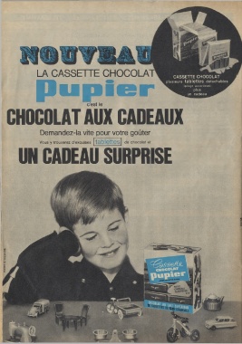 LA CASSETTE CHOCOLAT Pupi _ c’est le CHOCOLAT AUX CADEAUX Demandez-la vite pour votre goûter Vous y trouverez d’exquises | tablettes, de chocolat et UN CADEAU SURPRISE HAVAS PHOTO S. WILSHIRE