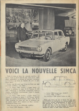 — La Simca 1300 (moteur « Super Rush » à Les premières 1300 seront livrées en mai.