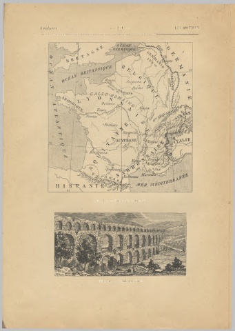 Lectures. — 10 — LES ORIGINES. Fig. 13. — Carte de la Gaule. Fig. 14. — Font du Gard.
