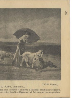 La bergère, qu'abrite un large parapluie, courbe le dos sous l'averse et ramène à la ferme son blanc troupeau,