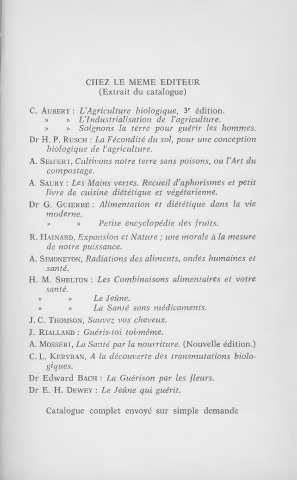C. Aubert : L’Agriculture biologique, 3e édition.