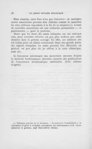 (1) Tableaux extraits de la brochure : « Kombinierte Gemüsebeetc », et