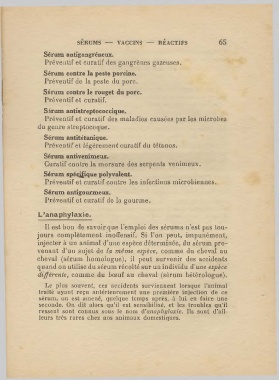 SÉRUMS - VACCINS - RÉACTIFS 65