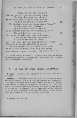 Exercice complémentaire. — Récrivez cette fable en mettant