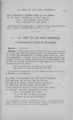 Intérêt. — Fable ornée, dont le portrait du Chat, toujours réussi