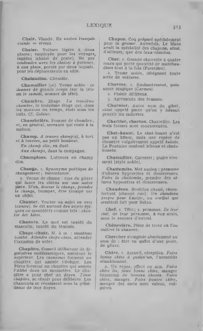 chapitre, se réunir pour délibérer. Des chère, manger. Faire pauvre chère,