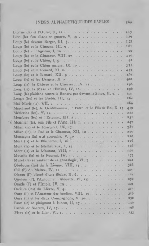 INDEX ALPHABÉTIQUE DES FABLES 569