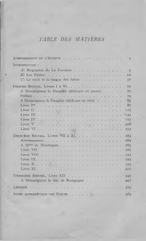 * B) Les Fables...................... 22