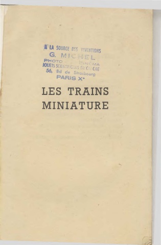 U SOURCE ll~S l'.VfrlTIONS G. ~11 1 •._ • 1 PHOTO JOU ·- l (\/1 ETS SClfl ~If L _ -> (t, e, ûTt 66# Bd de Strasbourg PARIS X• LES TRAINS MINIATURE