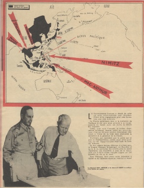 L« Général MAC ARTHUR a< la Général NIMITZ travaillant