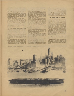 " Normandie " renfloué traverse New-York. Il a été renfloué et rééquipé par des evperts américains, après l'incendie qui le fit couler II y a deux ans.