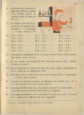13. — Je veux remplir une bouteille de 48 cl avec des verres de 8 cl ; combien