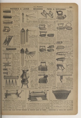 fonte galvanisée, et que l'on actionne à l'aide d'une le linge avec rapidité et sans faux plis. Se compose larg. jo cÍm, profondeur 3o c/m, poids ) kg. 800.