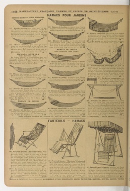 de mer, etc 19. » tendu de forte toile rayée. Ce fauteuil-hamac est 397. Fauteuil-hamac balançoire, monture bois laqué (;