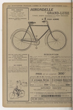 Nos cycles sont vendus sans intermé- ROUE LIBRE « HIRONDELLE » il. emboitage mécanique, soigné, avec cuivre,polissage extra-fin.