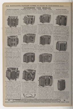 touche donne, en tirant comme en '1212. Accordéon, a 21 touches et 8 1236.Accordéon orchestre,à% tons l—o8. Accordéon Stradella, genre des