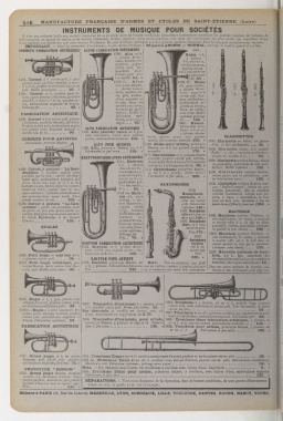 1521. Grand bugle si b, en cuivre 1601. TromboneTénor ut on si bà coulisses avec pomped'accord,pupitre et embouchurecuivre poli 26. »