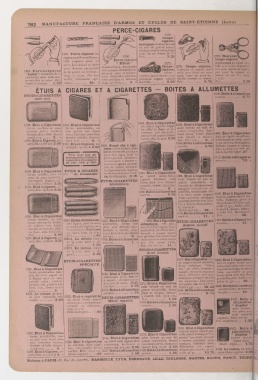 | EtuiàCigarettes: tres modèlesd'étuisà ^ poche^goussét.^ Couvercle 1h| 1412. Boîteàallumettes -