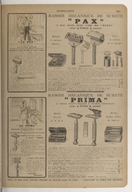 Trousses nécessaires à se raser, avec rasoir Prin-ià" (Voir page 798).