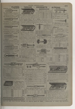 2225.Taraudpour filière n° 2221 de ,2253. Filière à cage oblique, en 22858. Lemême,pour 1à 5 m/m 1.50 longueur des branches ii e/m.