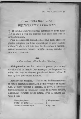 Assolement. Fumure.—L’ail est peu épuisant et redoute
